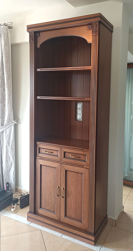 The handcrafted bookcase from "TOULIOS FURNITURE HANDCRAFTED CREATIONS" is a masterpiece of functionality and aesthetics. With care and a passion for artisanal handcrafted design, we create bookcases that showcase the beauty of your books. Using high-quality materials, such as solid beech and walnut wood, we craft bookcases with durability and timeless value. Custom design options, including shelves and cabinets, ensure ideal storage for your collection. Discover a unique handcrafted bookcase that will add personality and elegance to your space.